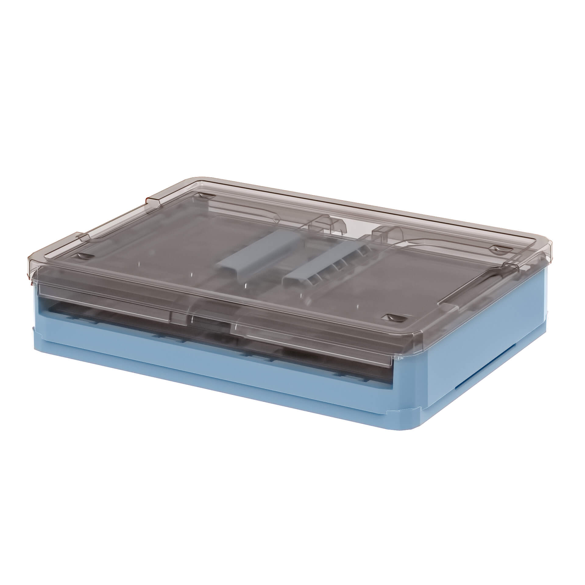 Практичный пластиковый складной ящик представляет собой идеальное сочетание дизайна и функциональности. Прозрачные стенки с коричневым оттенком позволяют легко увидеть содержимое, а глубокое синее дно придает изделию стильный и современный вид. Пластиковый контейнер идеально подходит для хранения одежды, игрушек, бытовых принадлежностей, документов и других мелочей.
