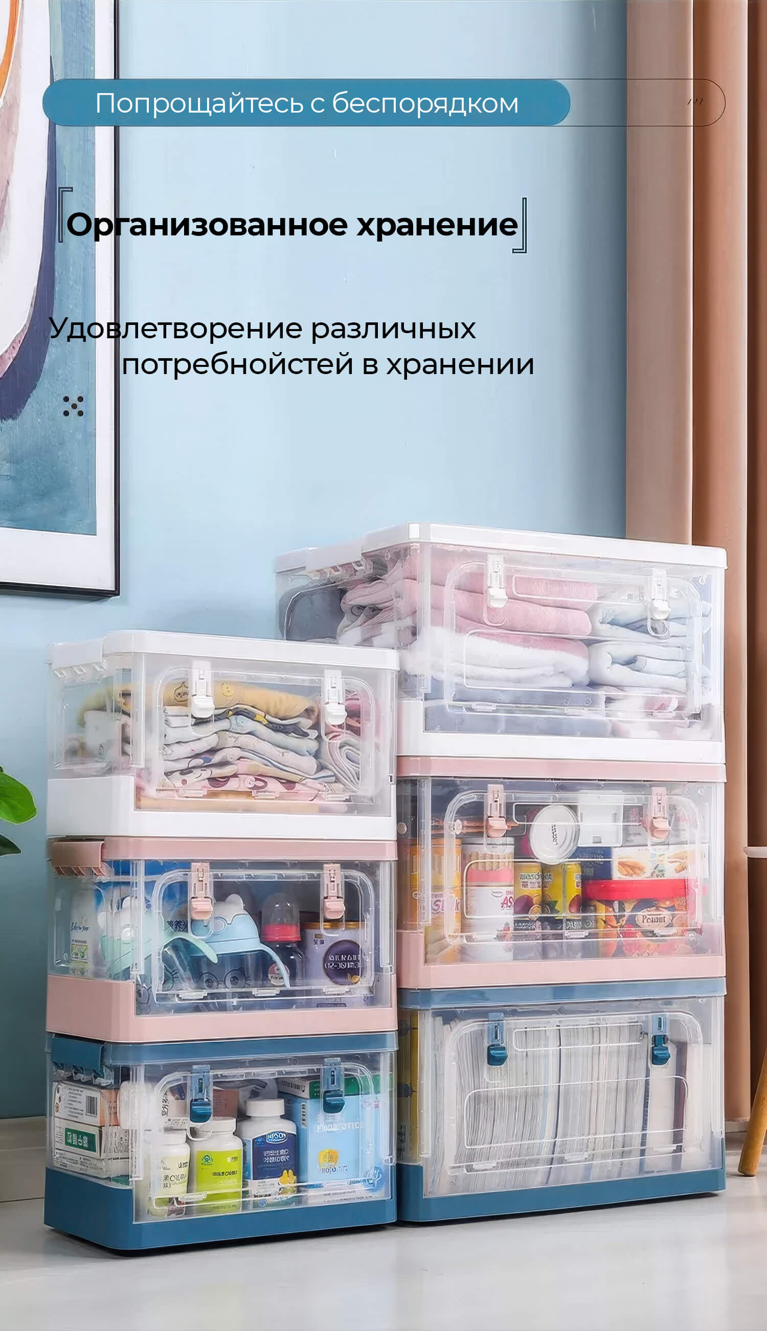 Пластиковая коробка с крышкой защищает вещи от пыли и влаги, обеспечивая чистоту и порядок. Прочная конструкция гарантирует долговечность, а складной механизм позволяет экономить место, когда контейнер не используется.