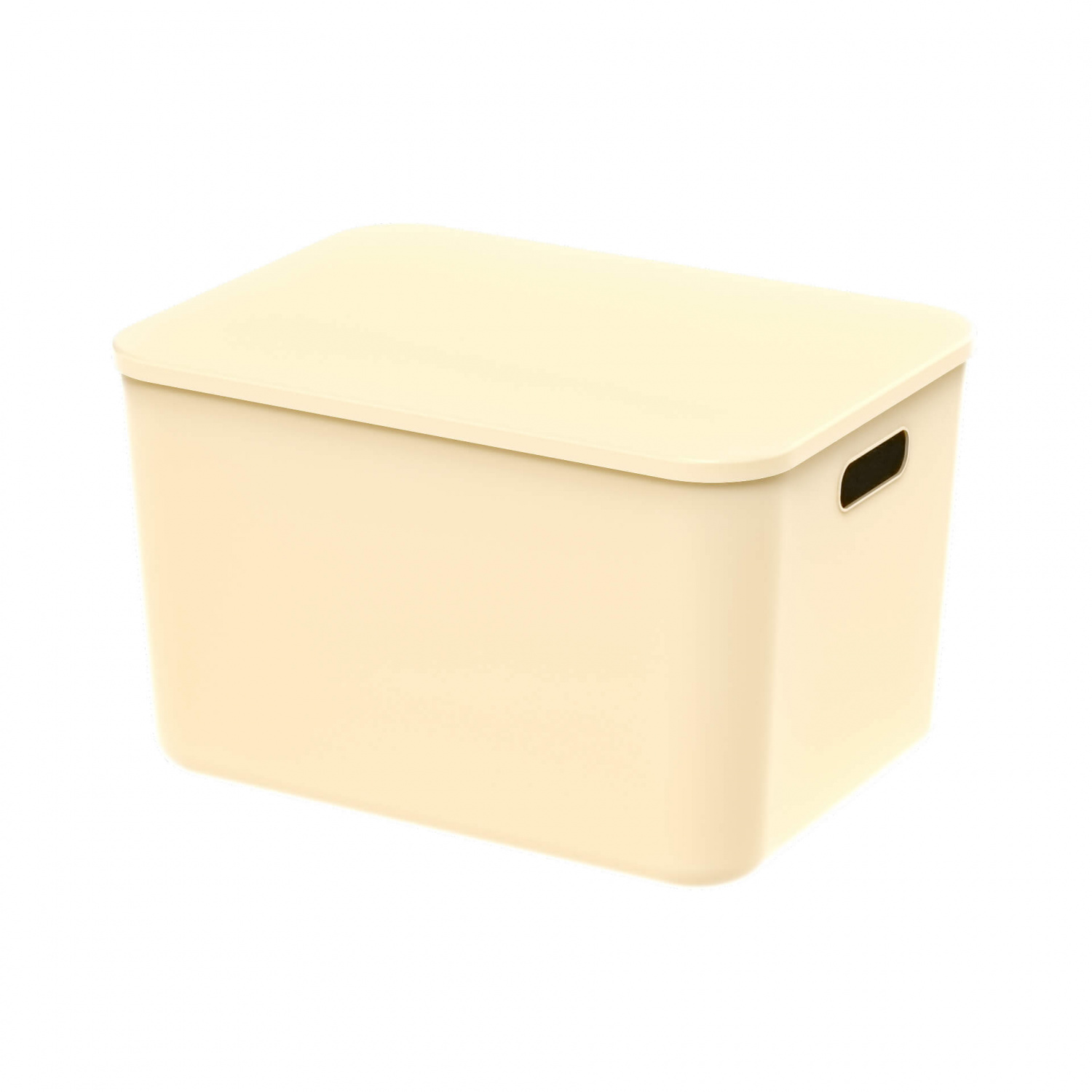 Вкладываемый пластиковый ящик 410х305х245 мм, бежевый, с открытыми ручками и крышкой – удобное и надежное решение для хранения